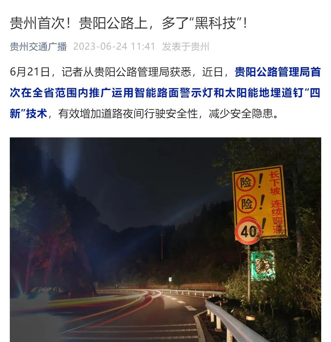 貴州貴陽市S104云開二級公路項目。示范應用得到了貴州當地媒體的大力報道。