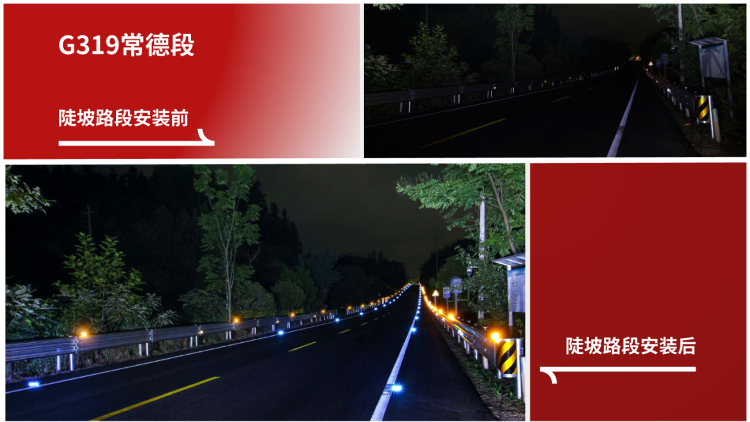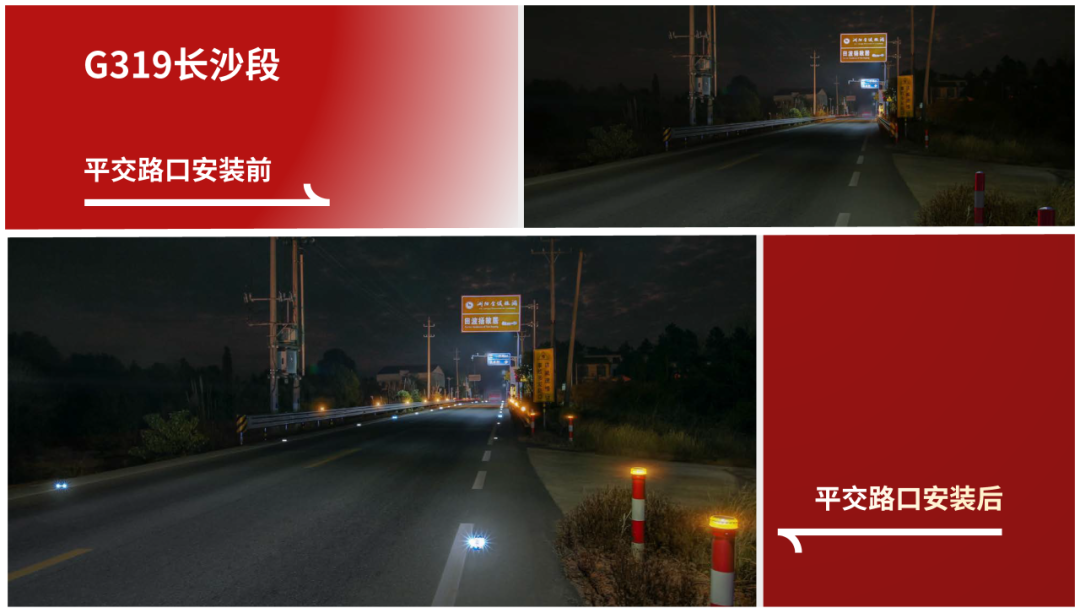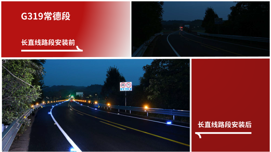 G319常德段長直線路段安裝前后效果對比受邀參加2023年度全國公路交通部省軍地聯合應急演練先進技術展示,精心打造的立體沙盤和 “智能蓄能自發光反光太陽能交通標識”系列產品展臺創新設計、科技感強,得到了各級政府領導和各省、市參會嘉賓的高度贊揚和廣泛好評。